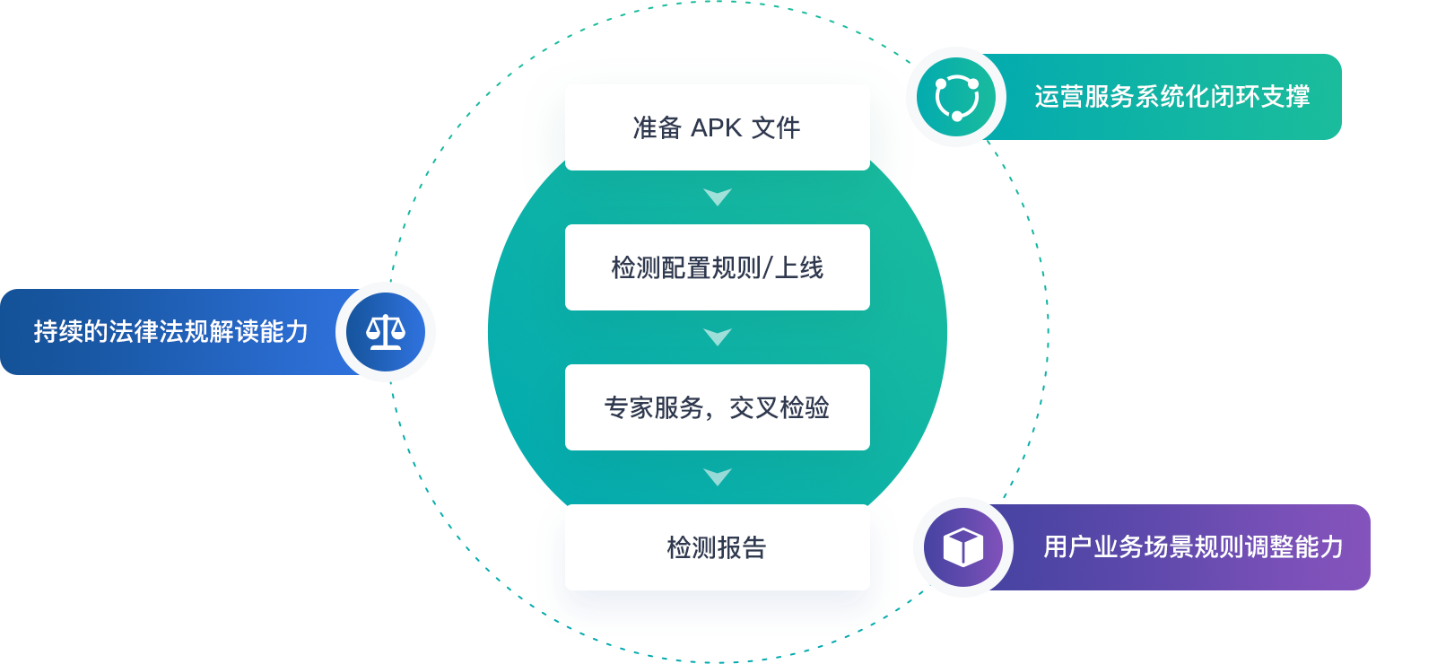 通过成熟的自动化检测系统及安全专家服务,为企业提供精准、高效的隐私合规检测能力,助力APP符合监管合规标准