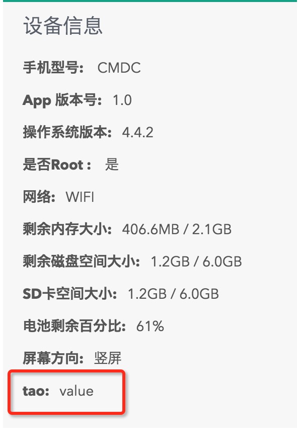 将在用户反馈的详情界面看到自定义的数据,如下图: